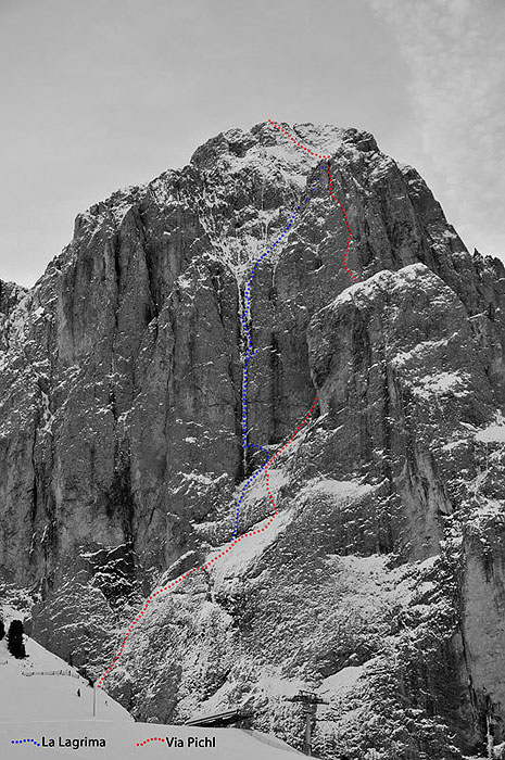 - "Legrima" North Sassolungo done by Adam Holzknecht and Hubert Moroder January 7th and 8th 2013